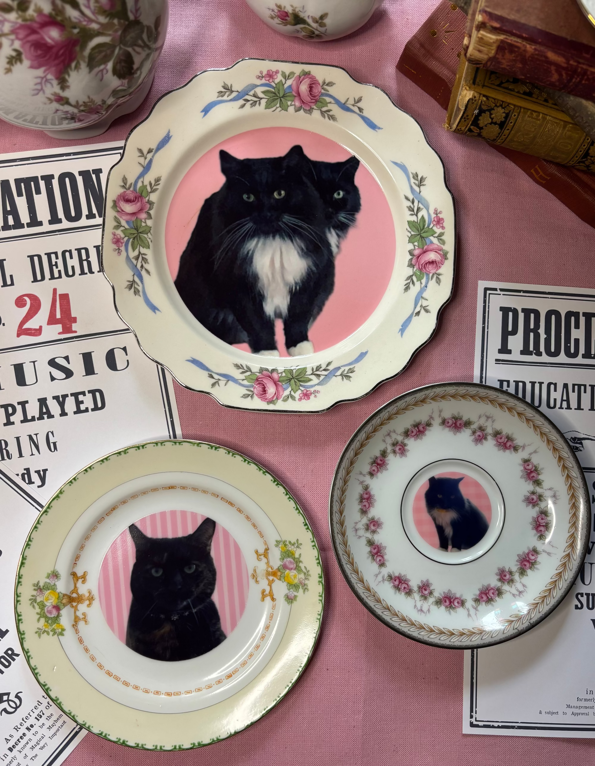 Custom Pet Plates - send me your pet's photo and I will put it on a beautiful vintage plate. I will remove the background of the image and add a pink background. If you have a specific background you would like added, please add it into the text box.
