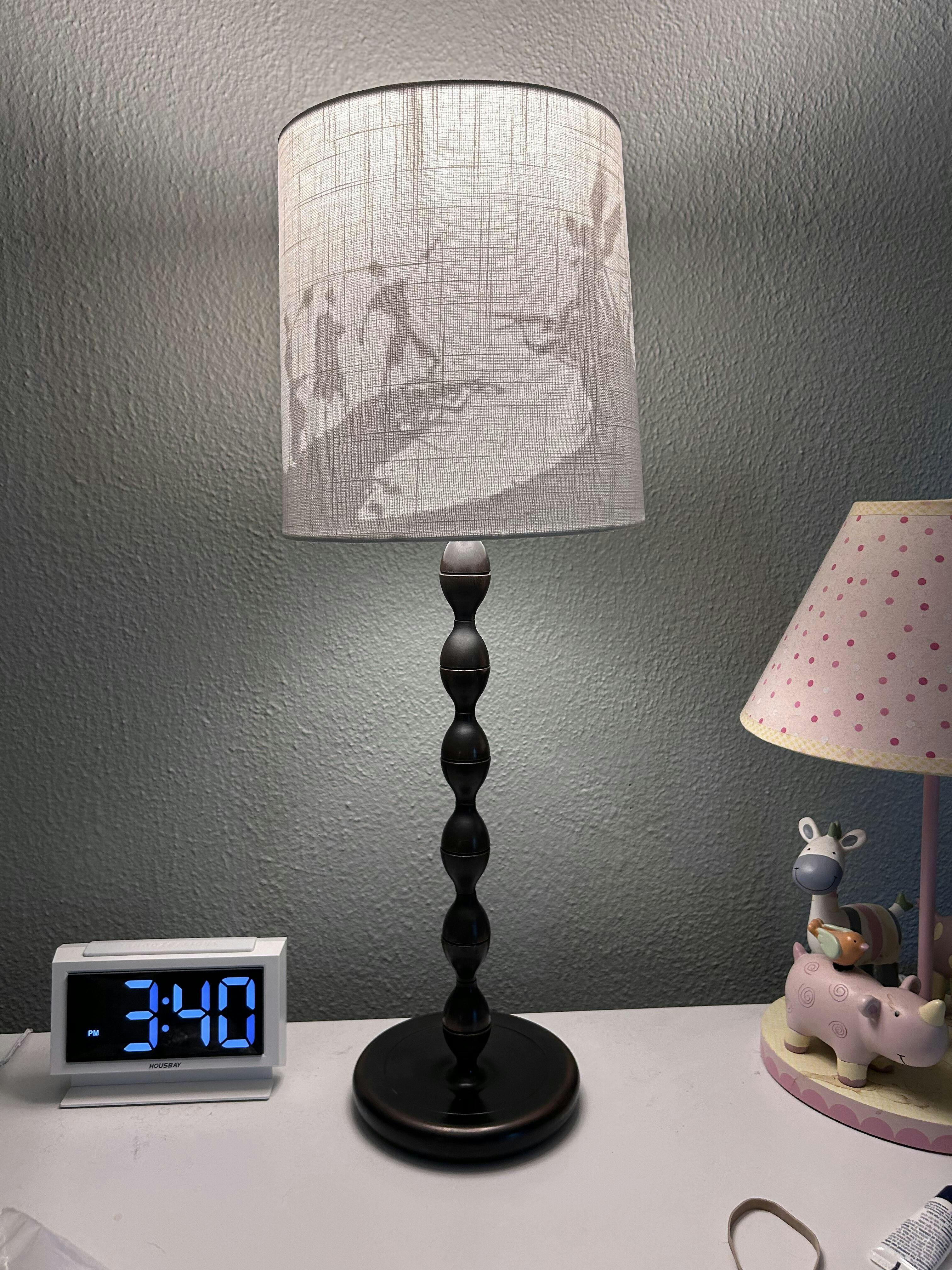 The lamp shade is an UNO style and relies on the bulb to hold it down. If no bulb is installed, the shade will not be stable and will not sit on the bulb holder by itself. The shade can be purchased by itself if you already have a base for it, shade should fit almost all standard US bulb bases.