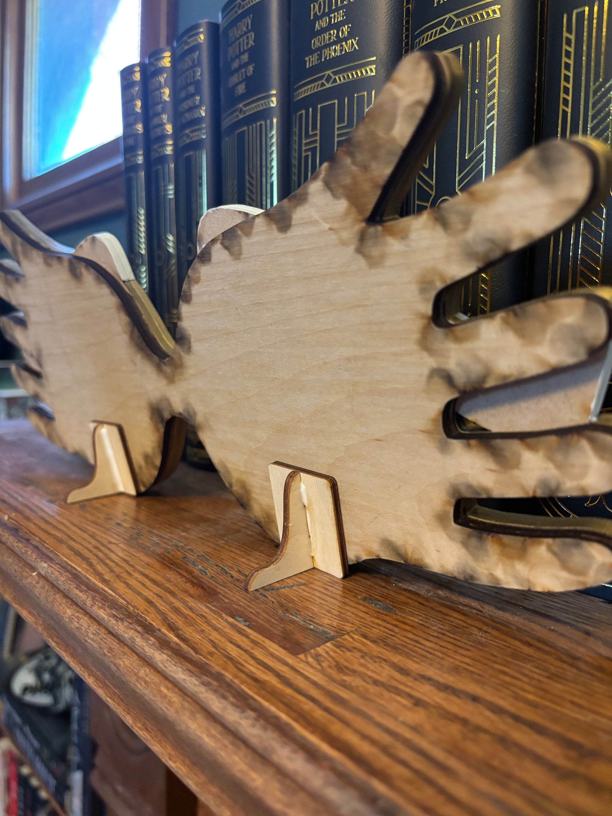 You can get this with a sawtooth wall hanger OR a wooden stand that is attached to the frame.